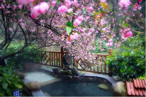 温泉四面环山、山清水秀,森林覆盖率达73%,景色宜人,是一座生态保存发育完好的天然花园。在这里,既可以泡温泉消除纷繁生活中的心灵疲惫,又可以亲近自然享受内心宁静。